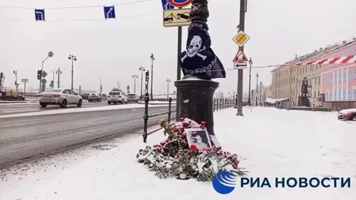 Теракт в Петербурге. Стихийный мемориал появился у кафе, где погиб военкор