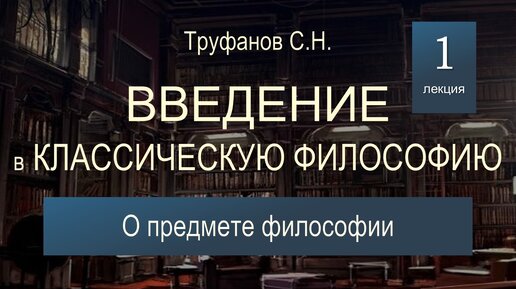Введение в классическую философию. Лекция №1 "О предмете философии".