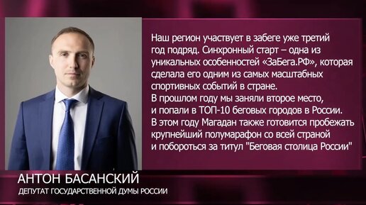 Видео: Антон Басанский: У Магаданской области есть все шансы стать «Беговой столицей России»