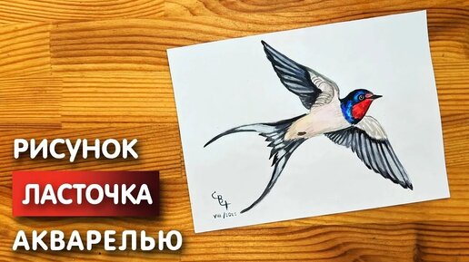 Как нарисовать ласточку карандашом и акварелью начинающим | Рисунок поэтапно и легко для детей