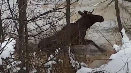 Лось провалился под лед на середине реки, люди помогли и спасли !
