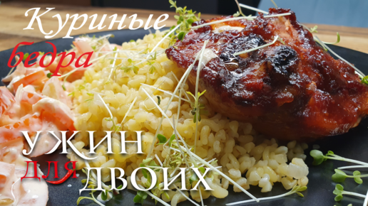 Куриные бедра в духовке с гарниром из булгура и вкусным простым салатом.