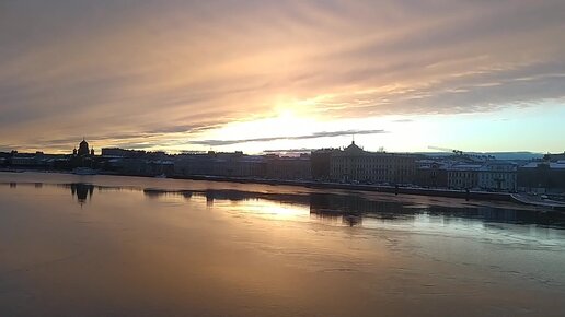 Санкт-Петербург: Нева, набережная лейтенанта Шмидта и красивый закат солнца