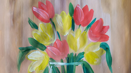 Букет тюльпанов🌷 Рисуем с детьми гуашью