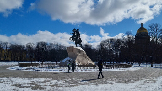 Сенатская площадь. Вокруг Конституционный суд, Президентская библиотека, Исаакиевский собор, Адмиралтейство. В центре - Медный всадник