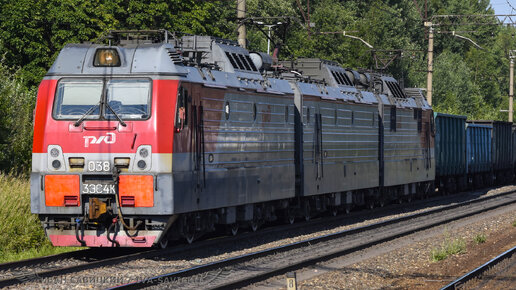 Громадный трёхсекционный электровоз 3ЭС4К-038 идёт на станцию Мга