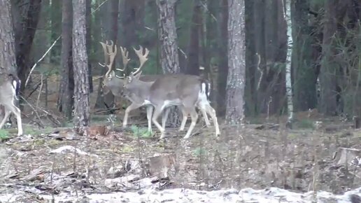 Лани переходят через лесную вырубку