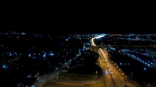 Вид с высоты на трассу А-147 в пос. Сириус(Сочи) в районе храма Христа Спасителя, поздний вечер, март 2023.