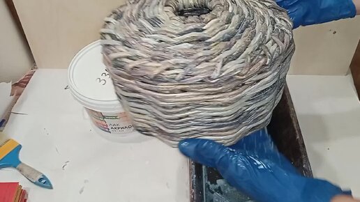 Грунтую готовое изделие... Плетение из бумажных трубочек... Плетение из лозы.