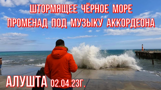 Алушта 02 04 23г. ШТОРМЯЩЕЕ Чёрное море/МНОГОЛЮДНО на набережной- воскресный променад/Курорт в Крыму