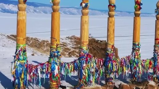 Послание Богам. Столбы на видео называются сэргэ и являются священным местом для жителей Байкала.