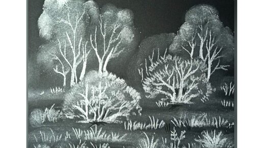 Пейзаж. Набросок меловым карандашом на чёрной бумаге.