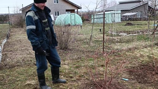 Дача. Весенняя обрезка голубики. Поздний сорт " Нельсон" , куст 6- 7- ми лет.