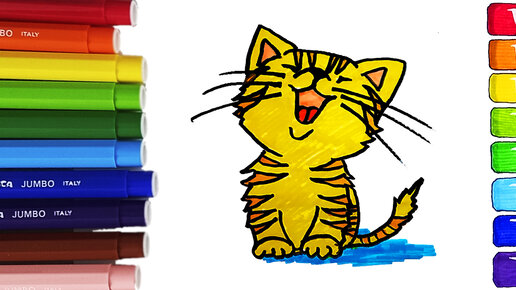 СМОТРИ!!! Круто нарисовал КОТИКА, Как нарисовать КОТЁНКА, Учись Рисовать, Рисуйте КОТА МАРКЕРАМИ.