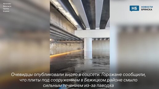 В Брянске не выдержали давления воды бетонные плиты под мостом на Литейной