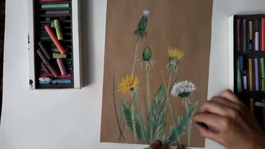 Одуванчики сухой пастелью. Рисунок для начинающих