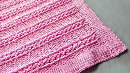 Детский розовый плед крючком, часть 1, вяжем основной узор