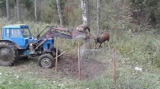 Под Торжком спасли лося, запутавшегося в оградительной сетке