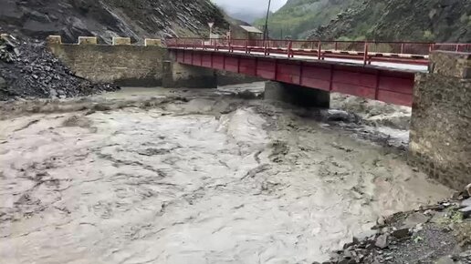 Бурные реки Алтая. Сила потока воды- сумасшедшая. Ещё один метр и мост разнесёт....