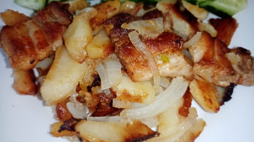 Простая русская еда! Жареная картошка с мясом и луком на сковороде! Это объедение, ооочень вкусно!