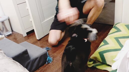 Мопс догоняет игрушку, но она всё никак не даётся! В конце очень милая мордаха