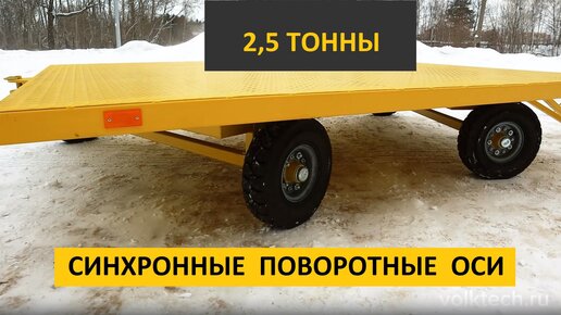 ✅ Промышленная тележка-прицеп Volktech (Россия) с 2мя синхронно поворачивающимися осями г/п 2,5 тонны