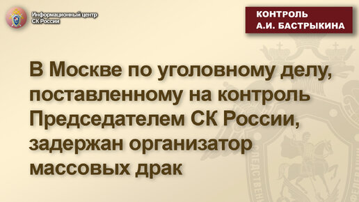 В Москве по уголовному делу, поставленному на контроль Председателем СК России, задержан организатор массовых драк