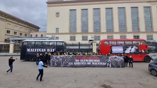 Политическая акция , проведённая с помощью наших сразу двух старинных автобусов в поддержку Аргентины, напротив посольства Великобритании.