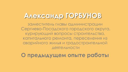 Александр Горбунов – о своём трудовом пути