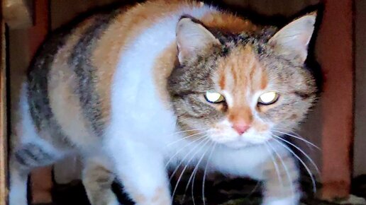 Приехали на дачу и пустили бездомную кошку в дом, а она стала обследовать дом и баню. Привезли кошке печень с колбасой. Кормим кошку у дома
