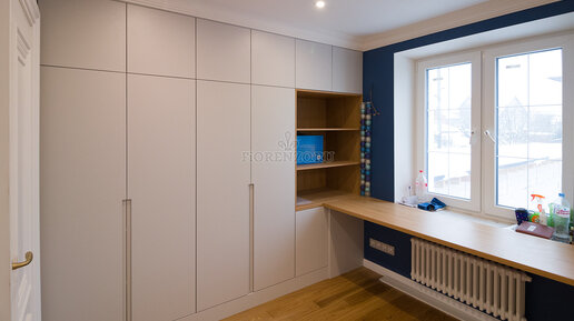 Шкаф и рабочее место у окна в детскую
