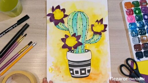 Как нарисовать кактус. Креативный рисунок для детей. Пошаговое рисование