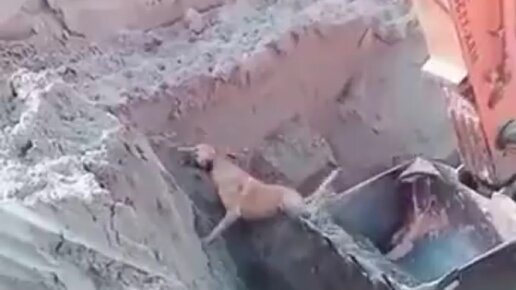 Строители спасли собаку из котлована, подцепив её ковшом