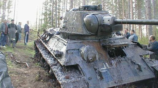 Запустили двигатель поднятой из болота "тридцатьчетверки" без переборки