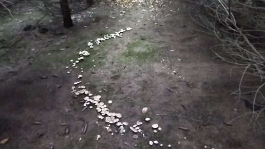 В этом лесу как в старой сказке, про страшный и ужасный лес. Показываю найденную дорожку ядовитых грибов