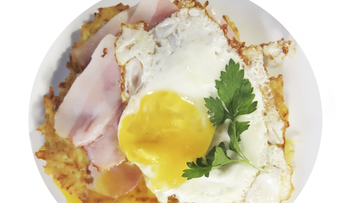 Вкусный завтрак за 5 минут. Натертый картофель, ветчина и яйцо позволяет приготовить очень вкусное и необычное блюдо.
