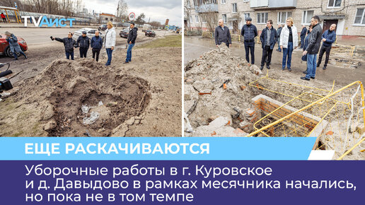 Уборочные работы в г. Куровское и д. Давыдово в рамках месячника начались, но пока не везде