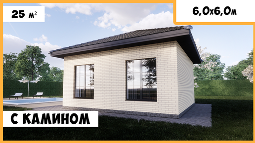 Проект бани 6 на 6 м с камином, с комнатой отдыха 25 м2