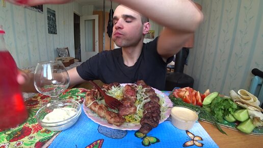 МУКБАНГ АСМР ШАШЛЫК из СВИНИНЫ / ЛЮЛЯ КЕБАБ / ПЛОВ С МЯСОМ / СОУС / ОВОЩИ/ ЛАВАШ EATING ASMR Mukbang #454