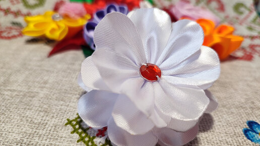 Цветок из ленты 25мм: техника канзаши. Новый вид ромашки.