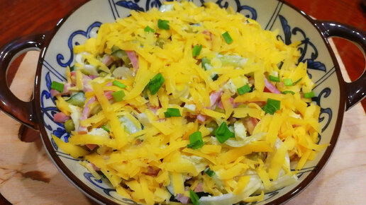 Конкурент оливье, салат "ШУСТРИК" с яичным блинчиком, очень вкусно и просто!