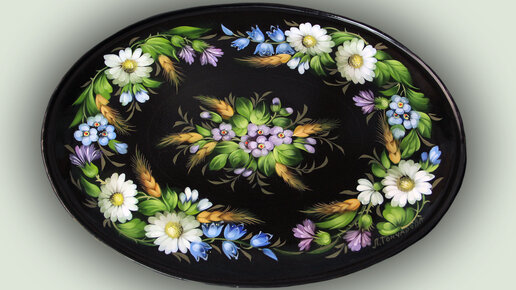 Жостовская роспись на овальном подносе. Ромашки. Мастер-класс от Ларисы Гончаровой из Жостово Арт Студия