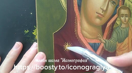 Звёздочки на мафории Богородицы Казанской, полировка твореного золота