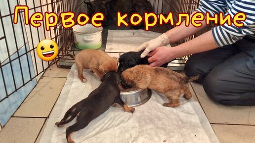 Доброхвостики | Бездомная собака приняла щенят как своих | Щенкам исполнился месяц | первое кормление щенят | Saving puppies