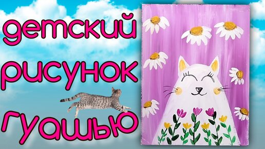 Как нарисовать кошку гуашью. Рисунок для детей красками. Рисуем легко кошку для детей