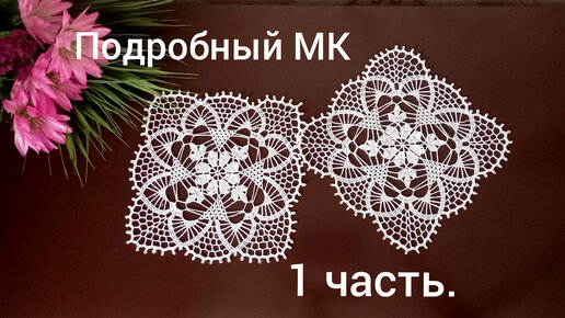 МК подробный.Салфетка крючком,,Цветок вишни,,. 1 часть
