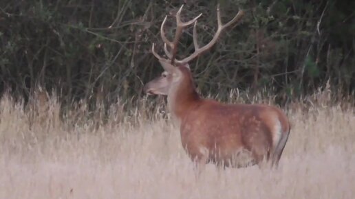 Благородные олени рогачи в конце дня на лесном лугу