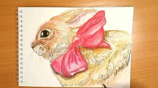 Рисуем кролика с красным бантом Ч2