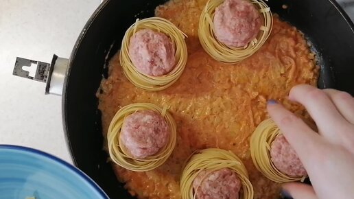 Гнезда из лапши с фаршем. Идея ужина для всей семьи