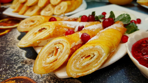 Нежные, тонкие блинчики на молоке с вкусной творожной начинкой на завтрак, - просто и вкусно. Наш любимый рецепт блинчиков на Масленицу